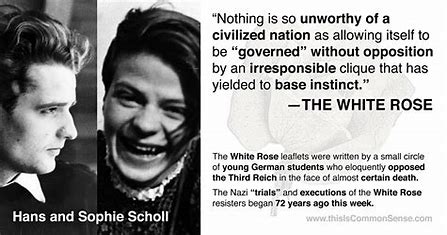 Eighty-three years ago, a small group of university students in Munich, Germany ‘woke up’. Despite the mandated membership and indoctrination of the ‘Hitler Youth’ and ‘League of German Girls’, these young people began to realise that there was something seriously sinister and wrong with the Nazi Regime. Despite not being Jewish, they recognised their fellow humans as precisely that – human; deserving of the same respect and dignity due to us all by virtue of our shared humanity.